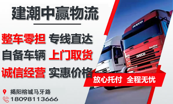 3、揭阳到金华物流专线价格优惠、运货及时,欢迎来人来电咨询揭阳到金华的物流价格、运费和报价等相关问题,建潮中赢物流将全力为您提供合理的运输方案。